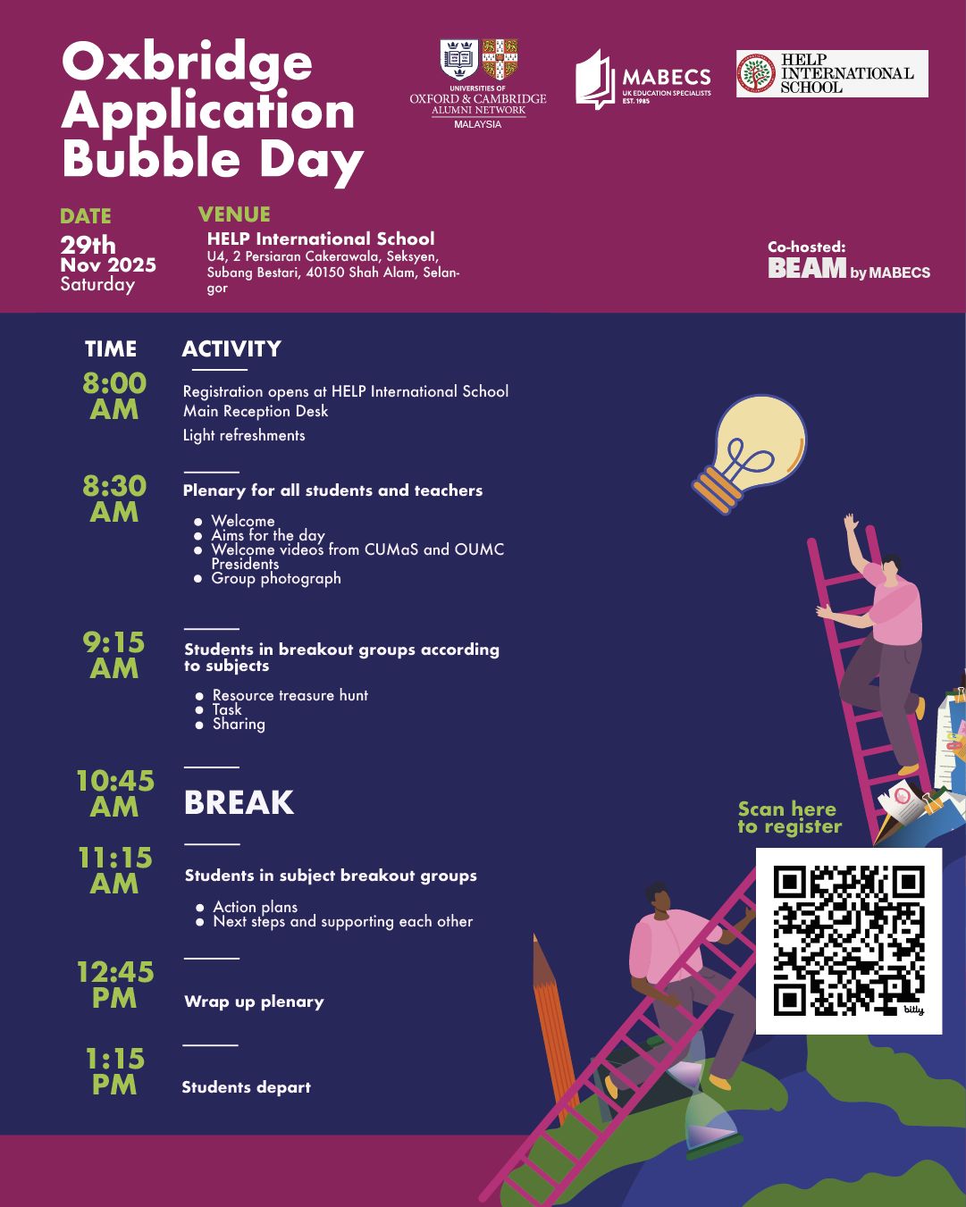 Join us for a half-day event designed to help aspiring Oxbridge applicants explore ideas, share experiences, and strengthen your preparation for competitive UK university applications - especially for Oxford and Cambridge!